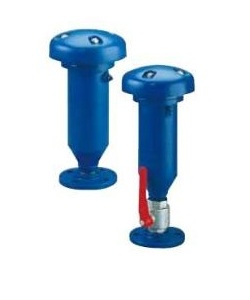 Air ValvesTriple function air valves for clear water. Ductile iron casing, PA 6 (polyamid) spindle, stainless steel drain cock, NBR (nitrile) drain cock seal, large orifice seal in polyurethane or NBR (DN100). VE 320 |  | | Automatically and continuously relieves air and gases that accumulate in high points of installations. |